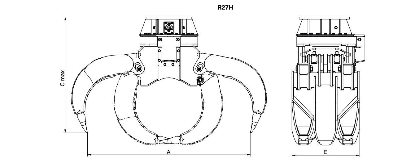 Der Kinshofer Steingreifer R27H-0,55 ist das ideale Werkzeug zum Setzen und Verladen von Natursteinen. Der Steingreifer ist für Bagger von 14t bis 20t Dienstgewicht geeignet und verfügt über ein robustes, voll integriertes Vierpunkt-Drehwerk mit innenliegenden Schlauchverbindungen, welches perfekt gegen Kräfte von außen geschützt ist. Hydraulische Schnellwechseladapter sind direkt anschließbar. Das integrierte Druckbegrenzungsventil verhindert einen Überdruck während dank zwei liegenden, trägergeschützten Hydraulikzylindern eine hohe Schließkraft möglich ist. Die Greiffläche ist durch die weit auseinanderliegenden Greifarmdrehpunkte sehr groß. Das integrierte Rückschlagventil garantiert das sichere Halten von Lasten. Zudem ist die Endposition des Greifers hydraulisch gedämpft, um die Zylinder beim Einsatz nicht zu beschädigen.
